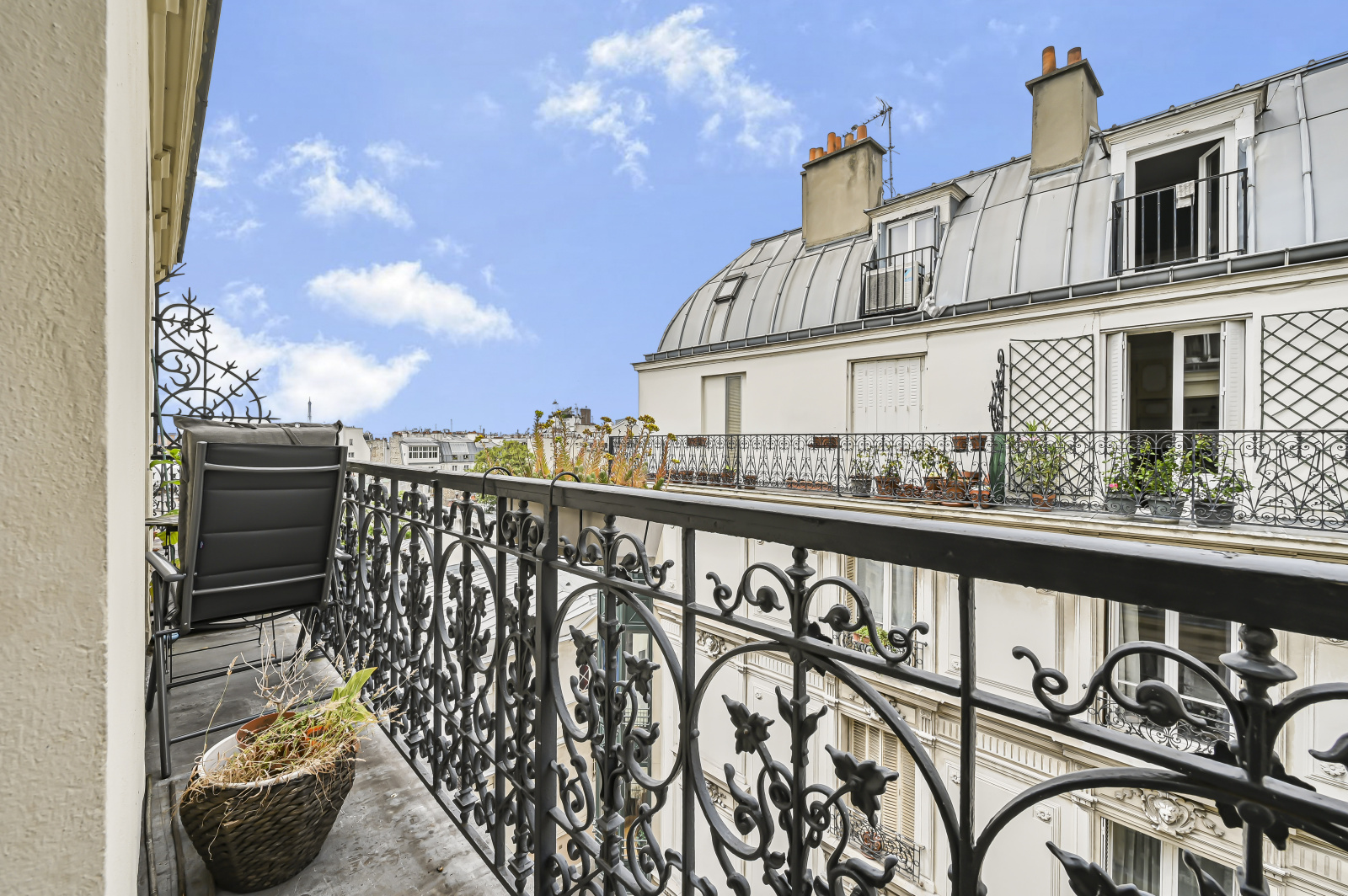 L'appartement se compose d'une entrée qui mène à un double séjour baigné de lumière, ouvrant sur un balcon filant qui offre une vue imprenable sur les toits de Paris, avec la Tour Eiffel en toile de fond. Actuellement configuré en 3 pièces, l’appartement comprend un séjour, deux chambres, une salle de bain avec fenêtre, une cuisine indépendante et un WC séparé. Une cave en sous-sol complète ce bien.